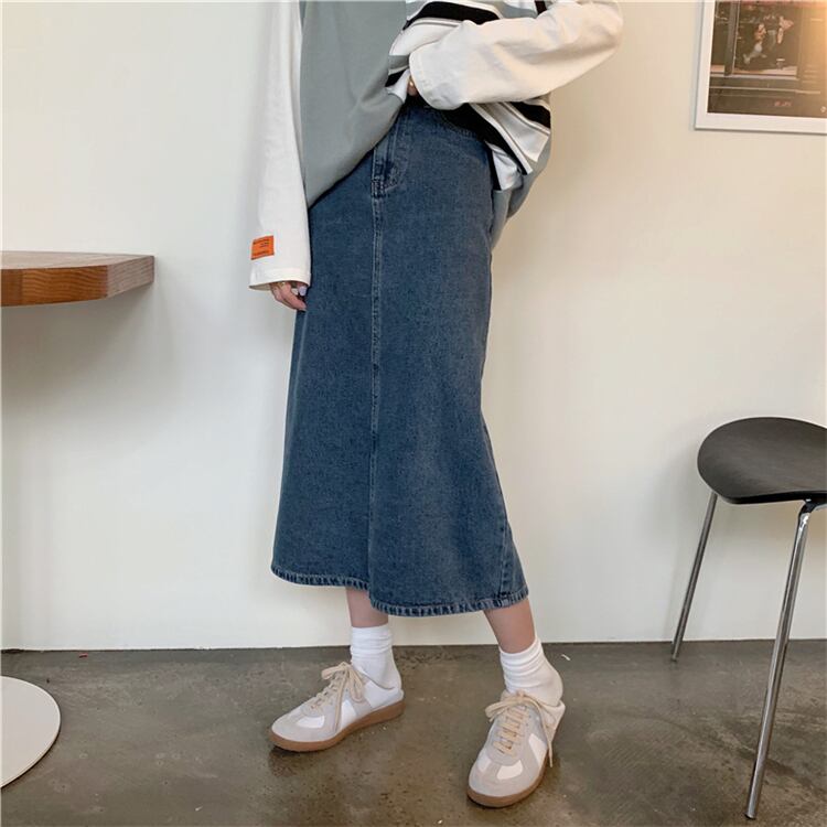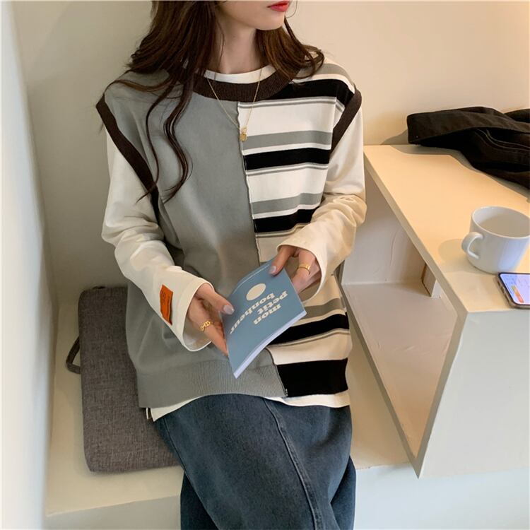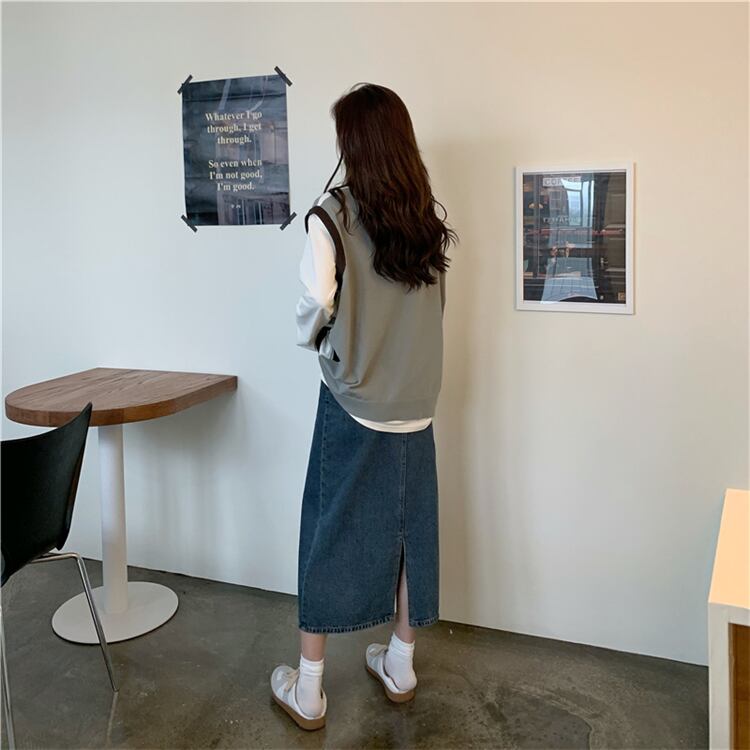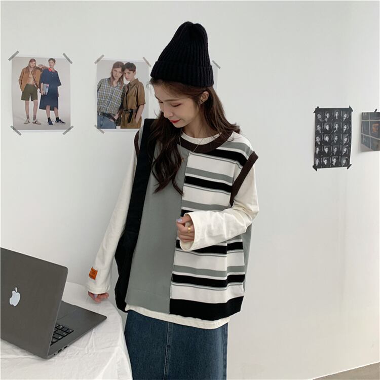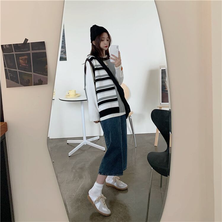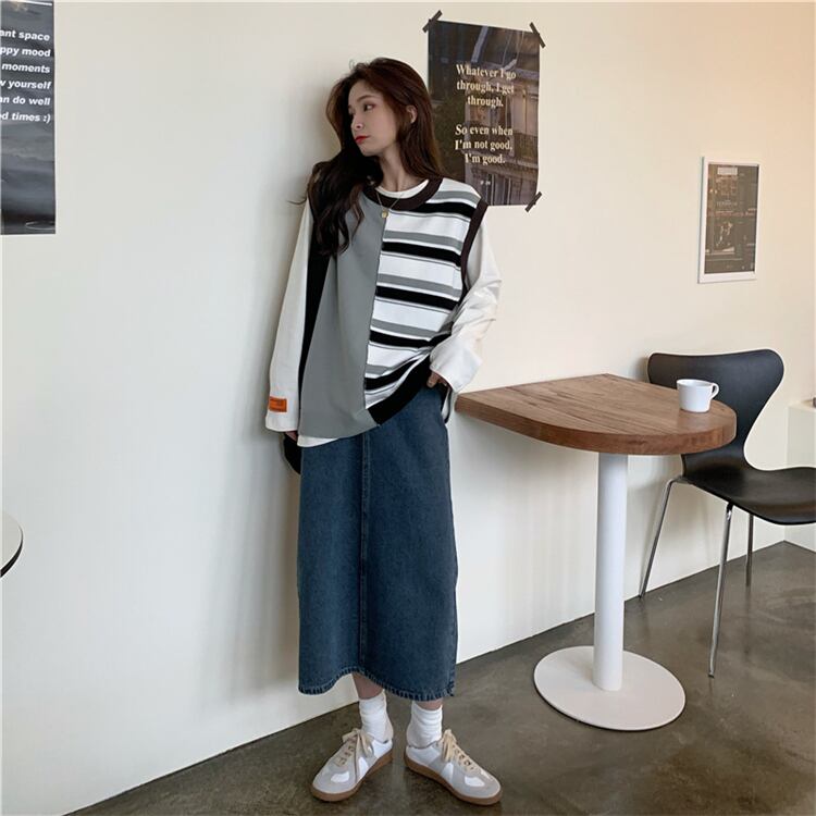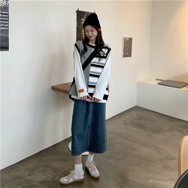 【韓国通販 dgo】casual stripe vests(long sleeve shirt+Denim skirt)(A1591)