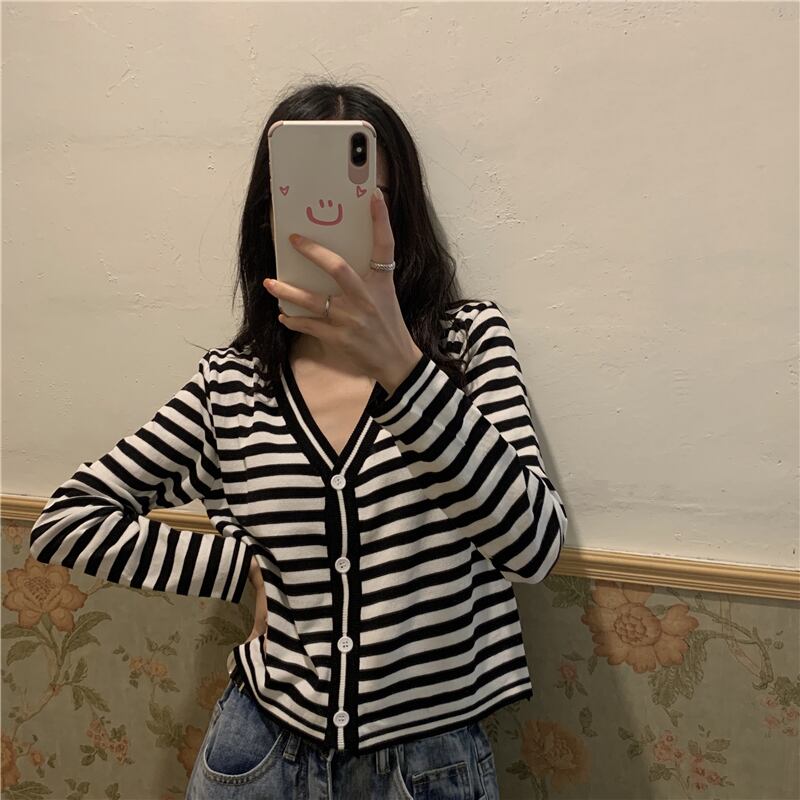 【韓国通販 dgo】stripe short cardigan 3colors(A1577)