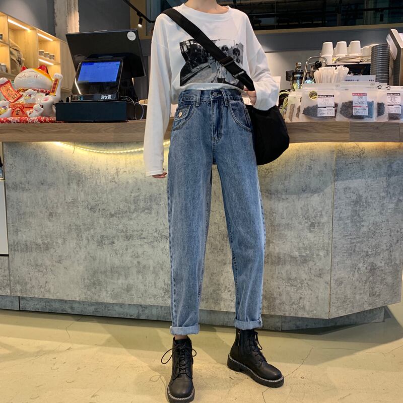 【韓国通販 dgo】high waist harem pants jeans blue color(A1557)