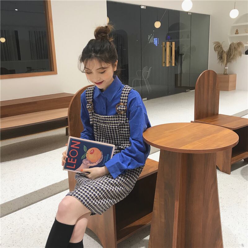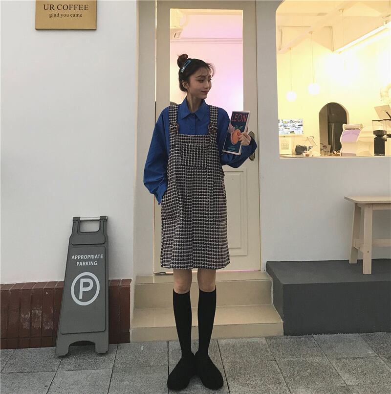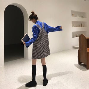 【韓国通販 dgo】Plaid Suspender skirt(blue long sleeve shirt)(A1553)