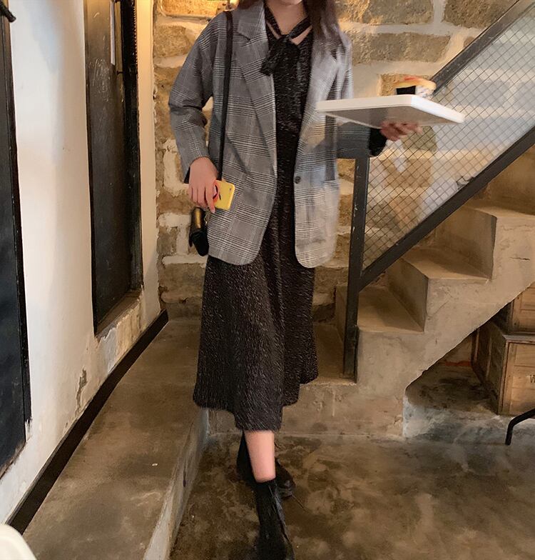 【韓国通販 dgo】retro plaid suit jacket(A1485)