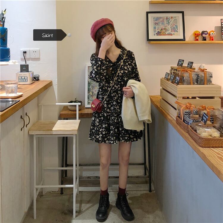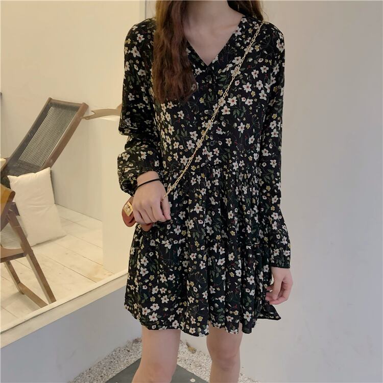 【韓国通販 dgo】floral retro one-piece dress 2pattern(A1460)センス溢れるファッションitem