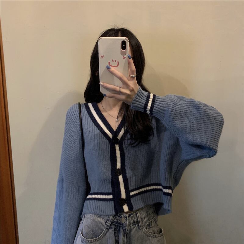 【韓国通販 dgo】contrast color v-neck sweater cardigan 2colors(A1436)
