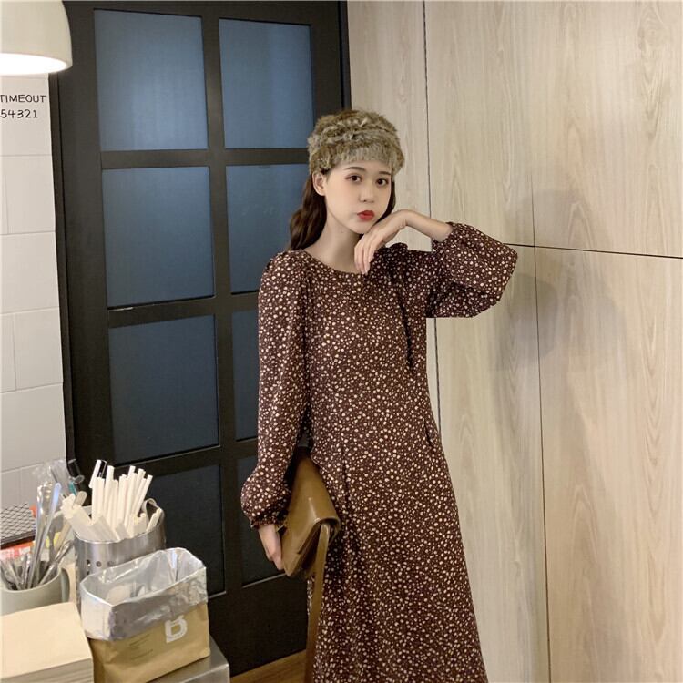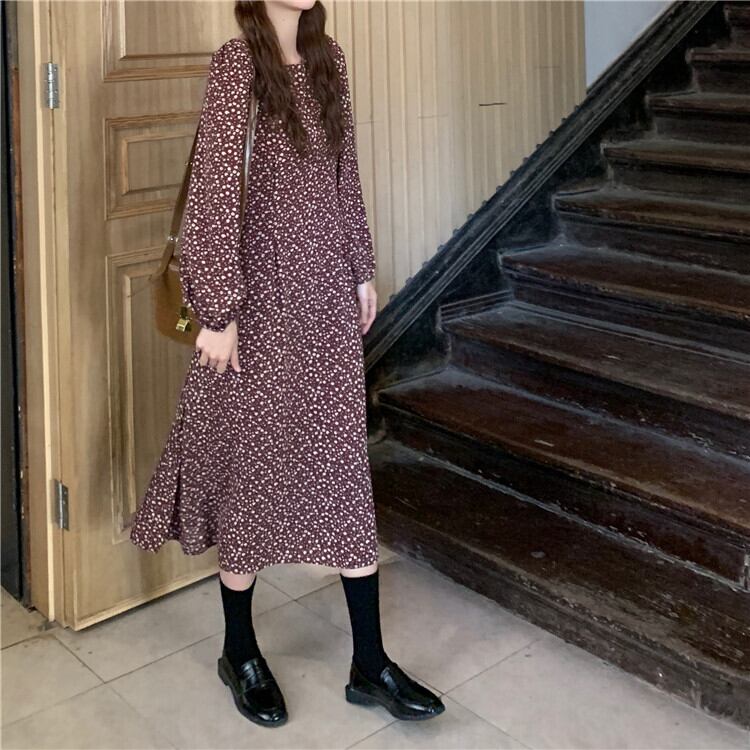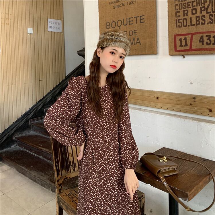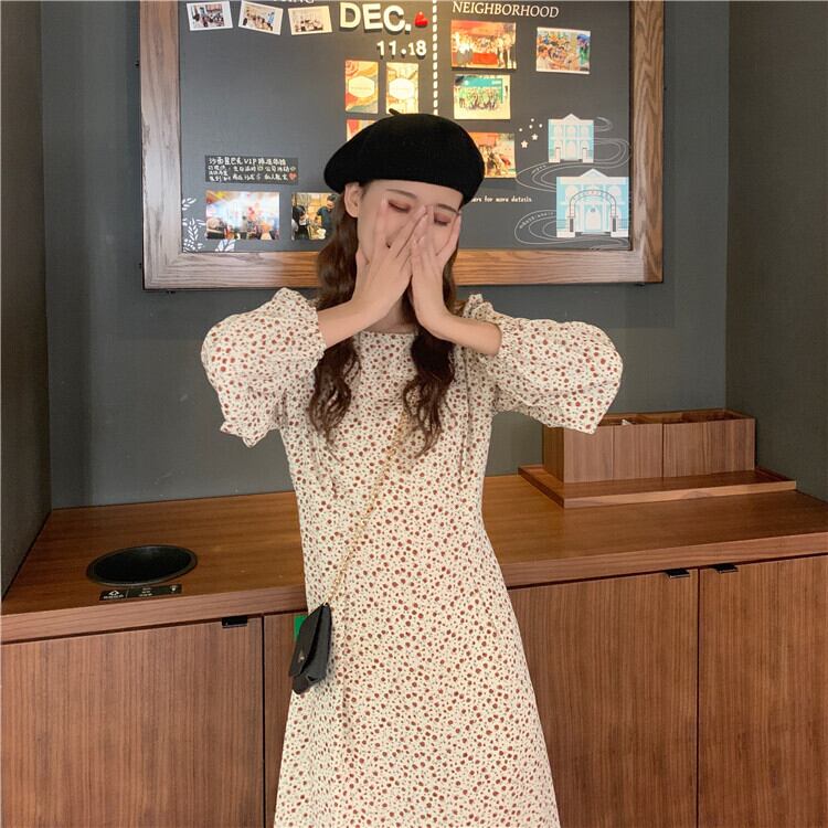 【韓国通販 dgo】puff sleeve floral one-piece dress 2colors(A1424)