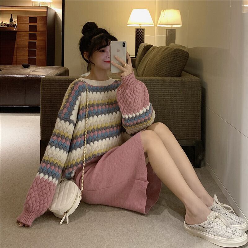 【韓国通販 dgo】colorful long sleeve sweater(A1408)