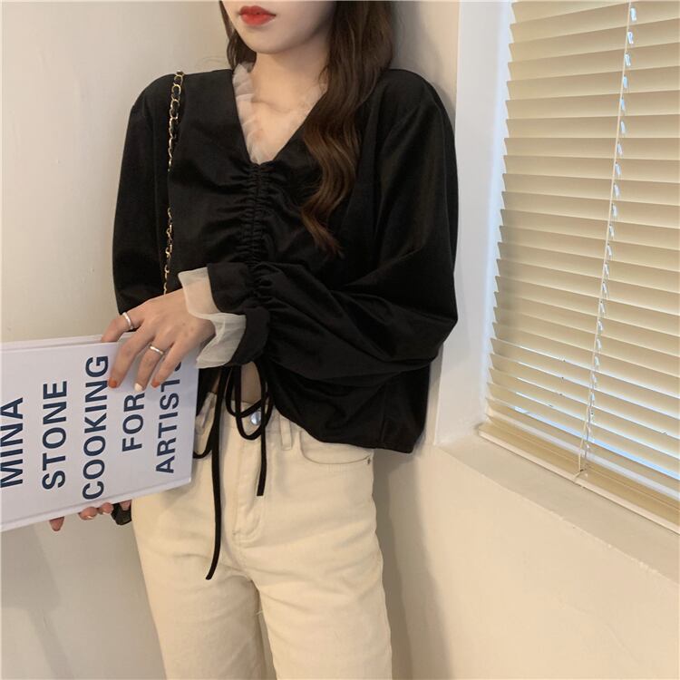 【韓国通販 dgo】v-neck slim blouse black color(A1354)