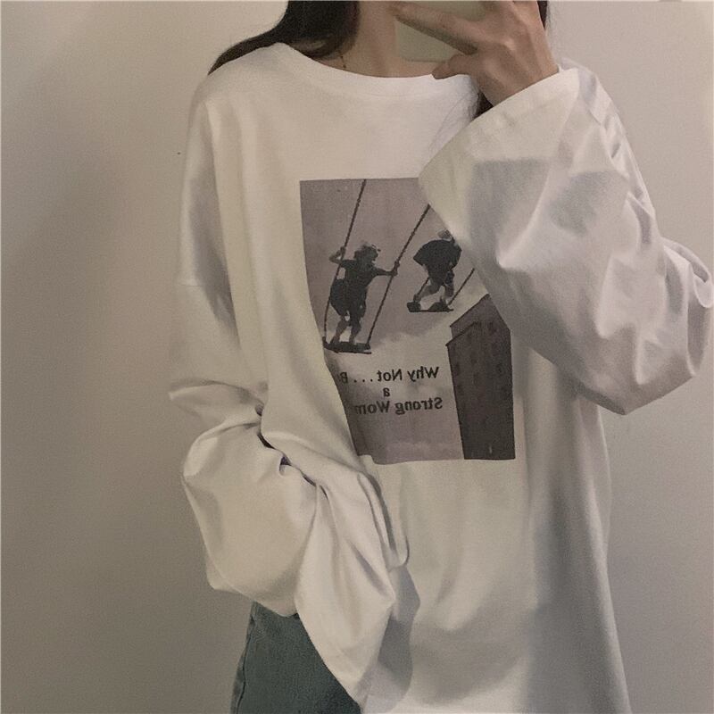 【韓国通販 dgo】long sleeve white print T-shirt(A1334)