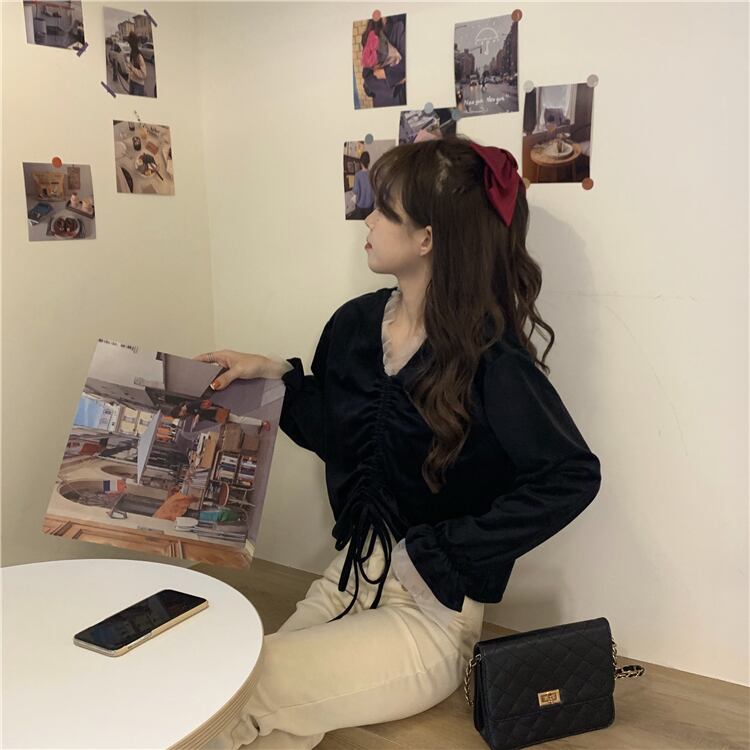 【韓国通販 dgo】long sleevel slim v-neck shirt(A1324)