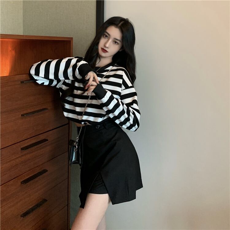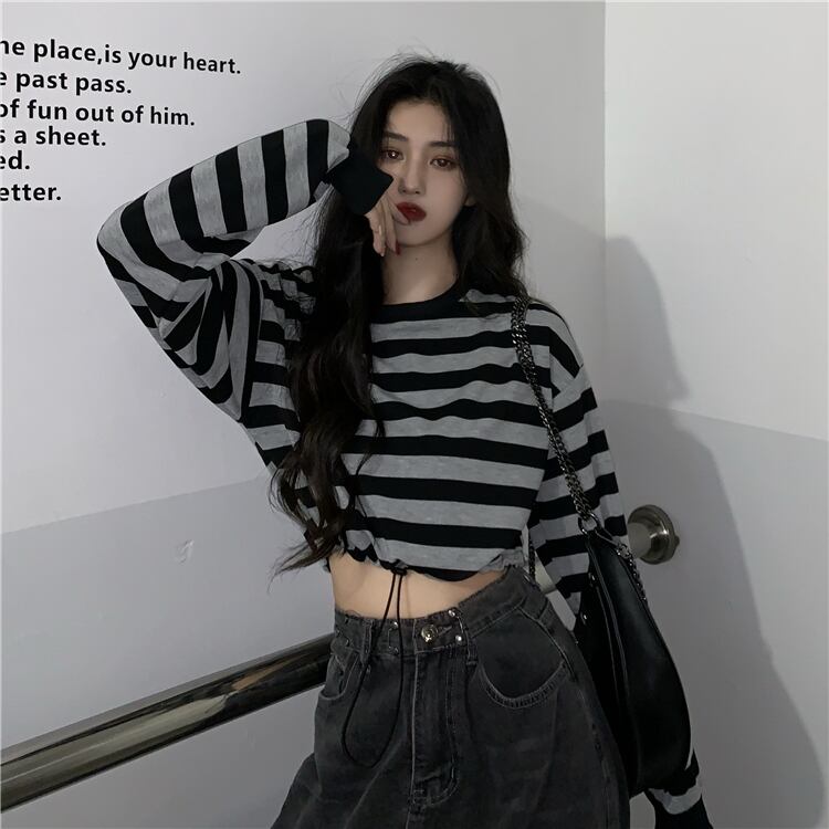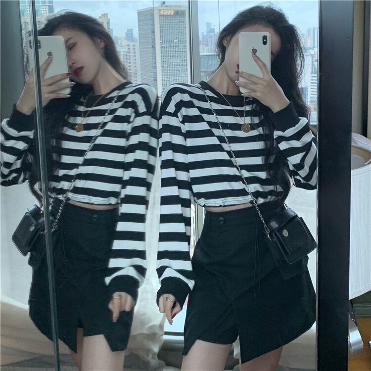 【韓国通販 dgo】roundneck stripe shirt 2colors(A1318)