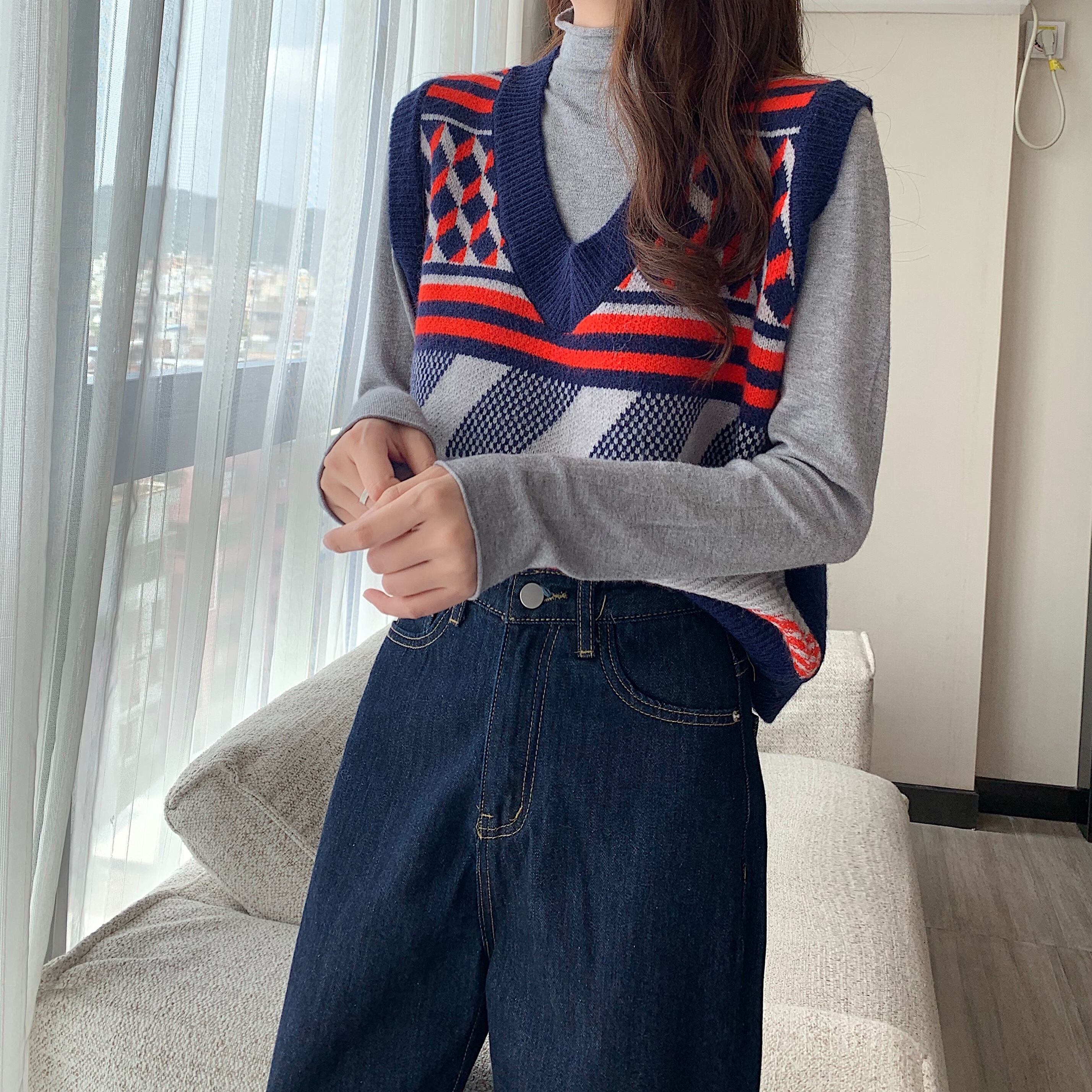 【韓国通販 dgo】v-neck knit vest 3colors(A1314)