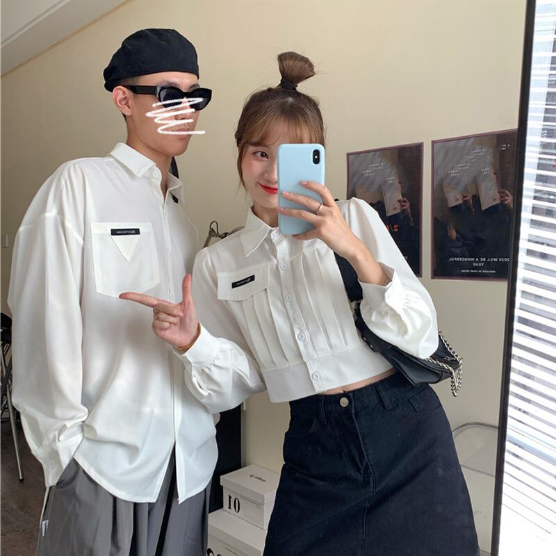 【韓国通販 dgo】white long sleeve shirt couple coordination(A1300)