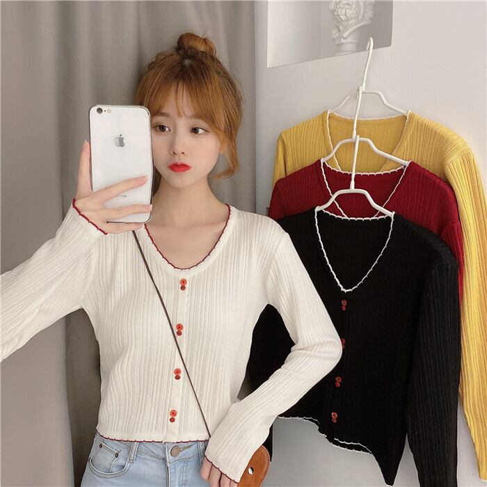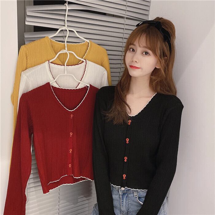 【韓国通販 dgo】long sleeve short slim tops 4colors(A1290)