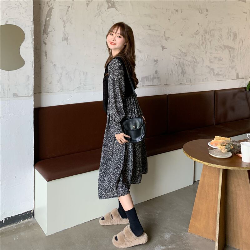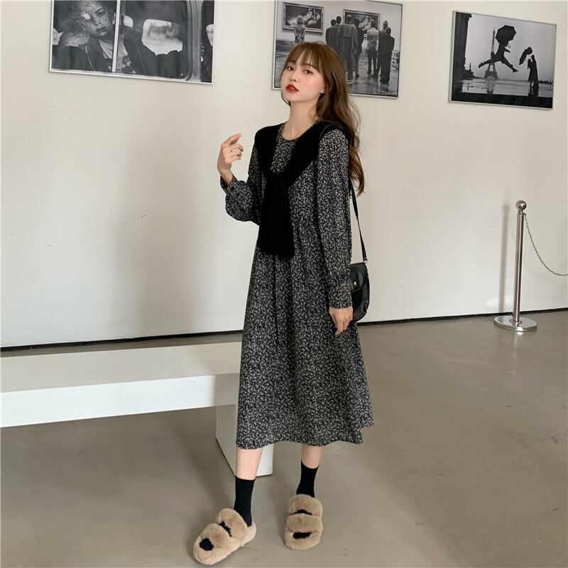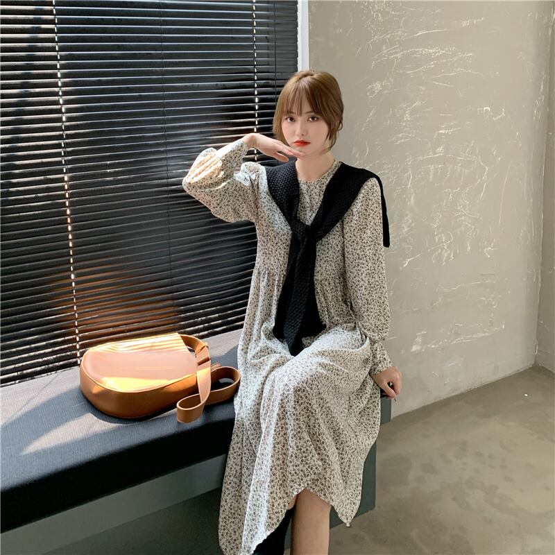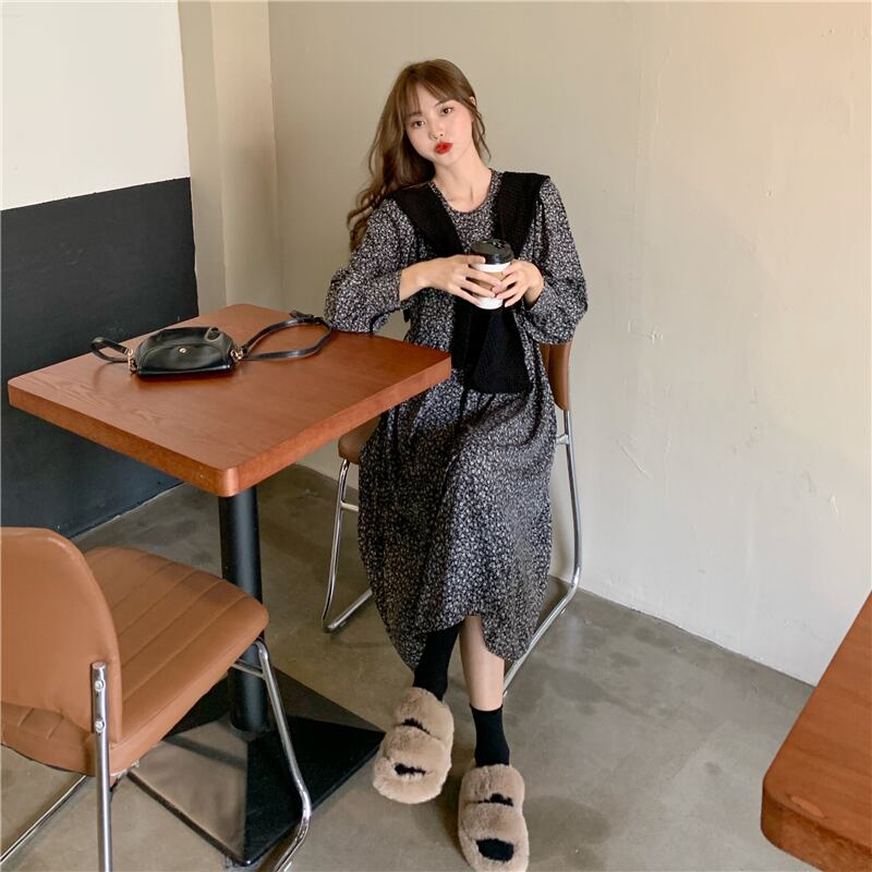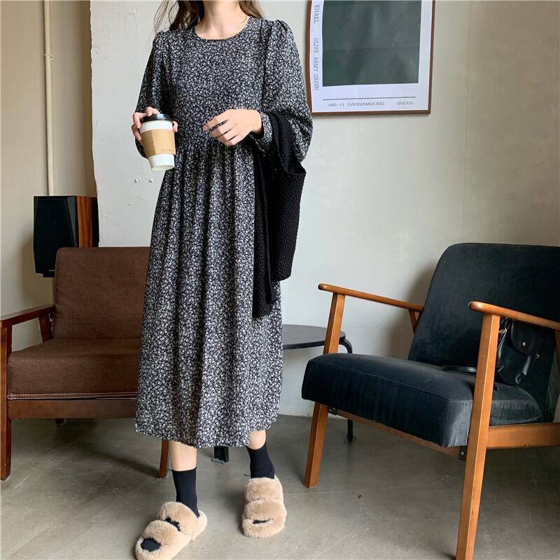 【韓国通販 dgo】middle-length roundneck floral one-piece 3colors(A1182)
