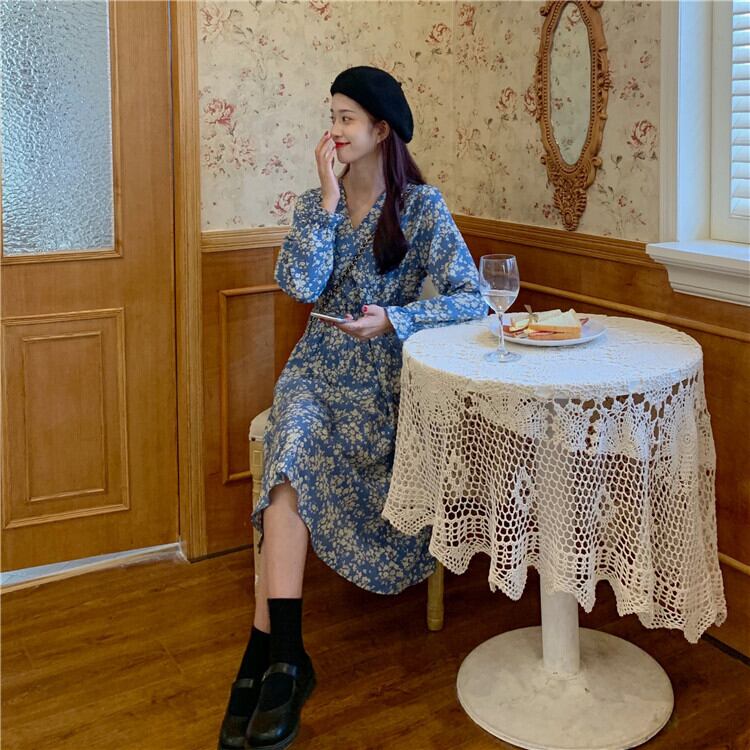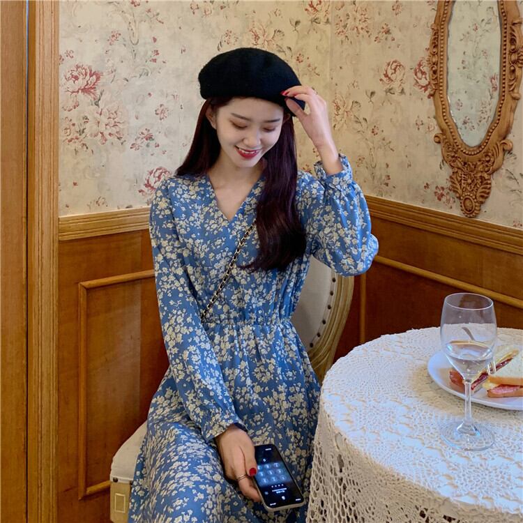 【韓国通販 dgo】french v-neck floral one-piece(A1178)