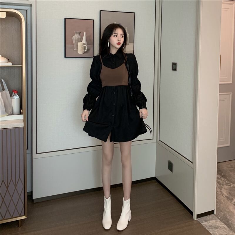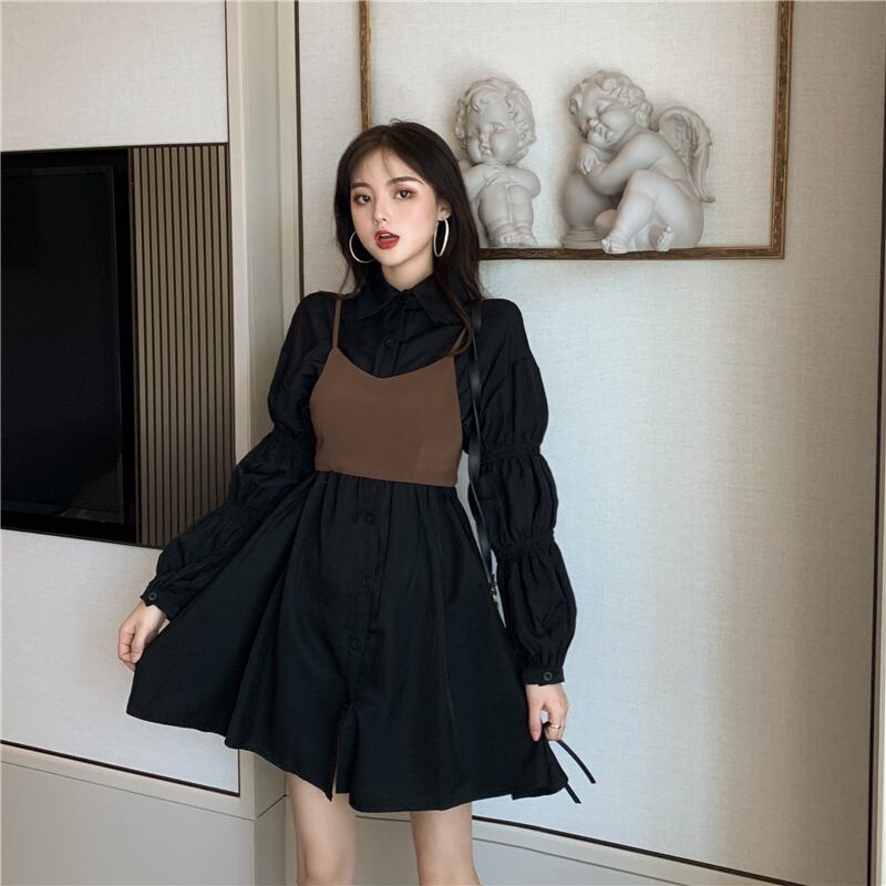 【韓国通販 dgo】puff sleeve high-waist one-piece 2colors (A1173)