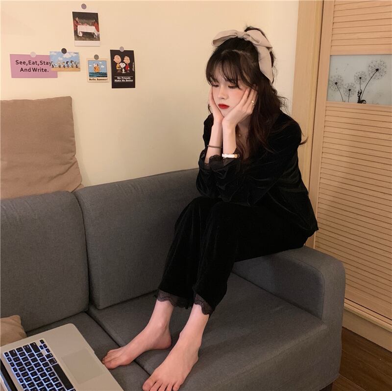 【韓国通販 dgo】v-neck lace roomwear 2colors(A1167)