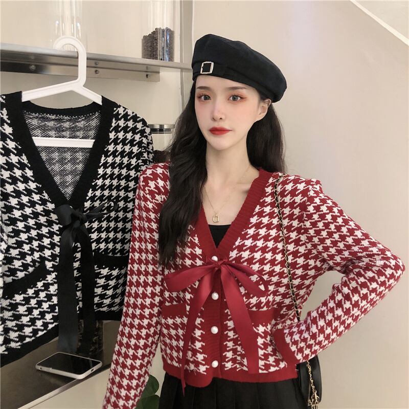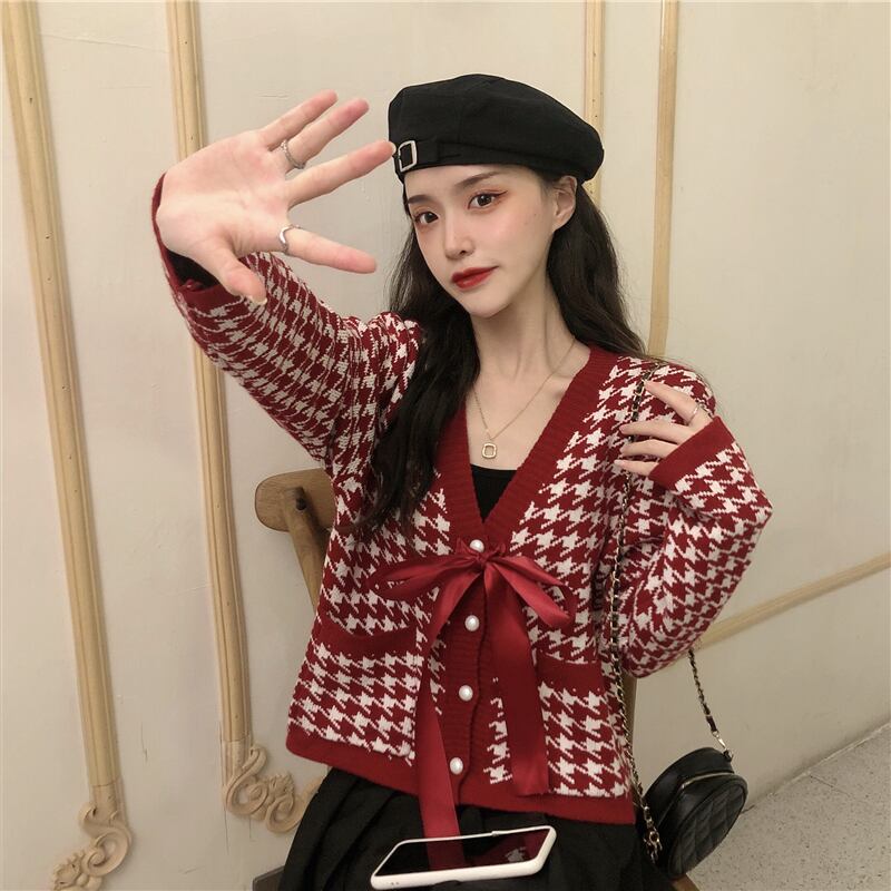 【韓国通販 dgo】v-neck chequered cardigan 2colors(A1166)
