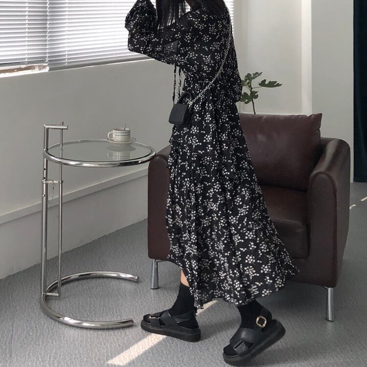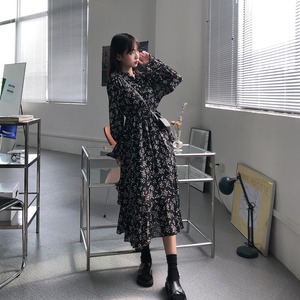 【韓国通販 dgo】v-neck high-waist floral one-piece (A1165)