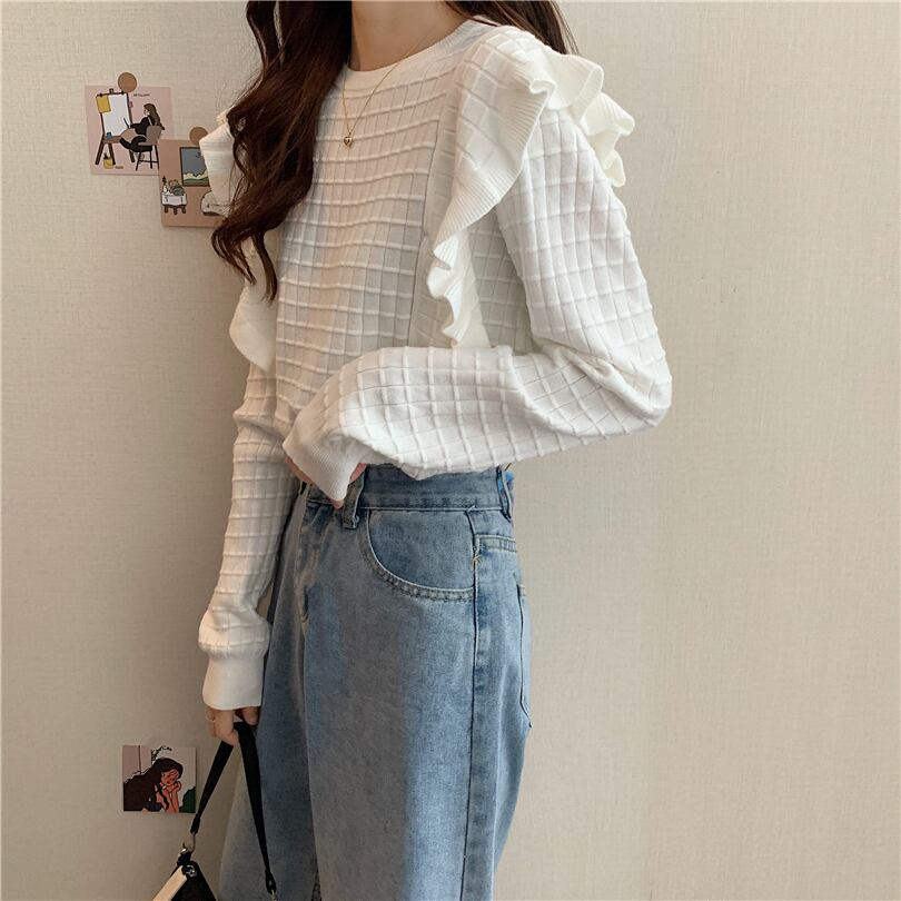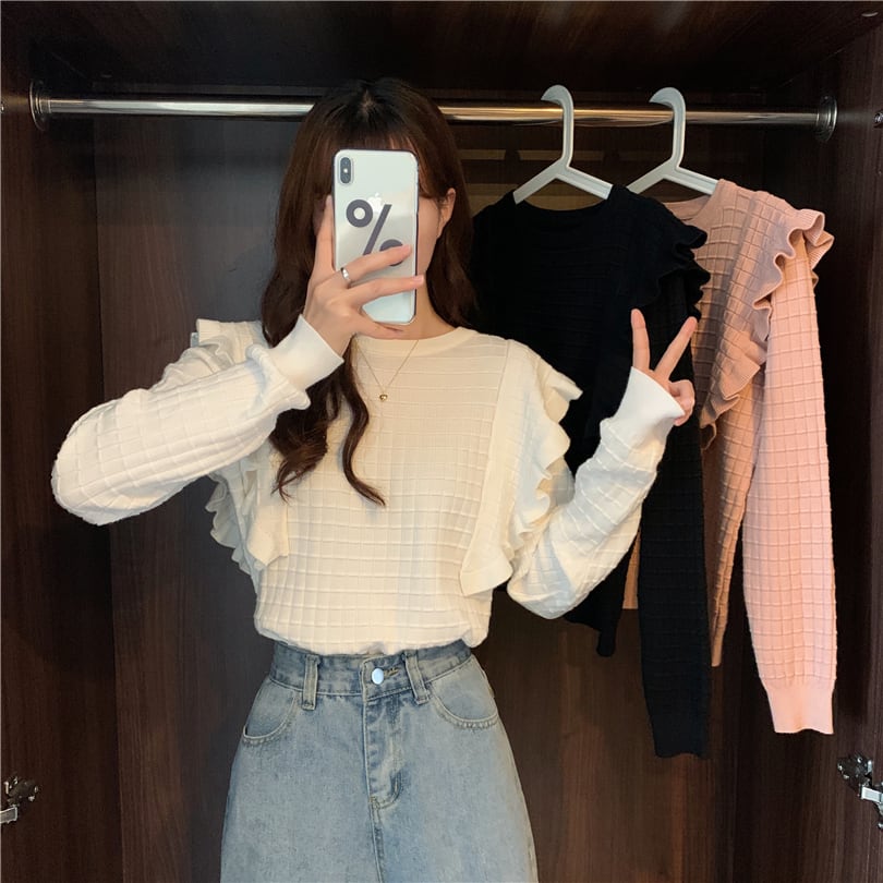 【韓国通販 dgo】round neck frill tops 3colors(A1162)