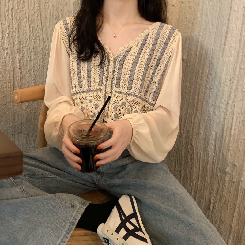 【韓国通販 dgo】v-neck chiffon cardigan 2colors(A1160)