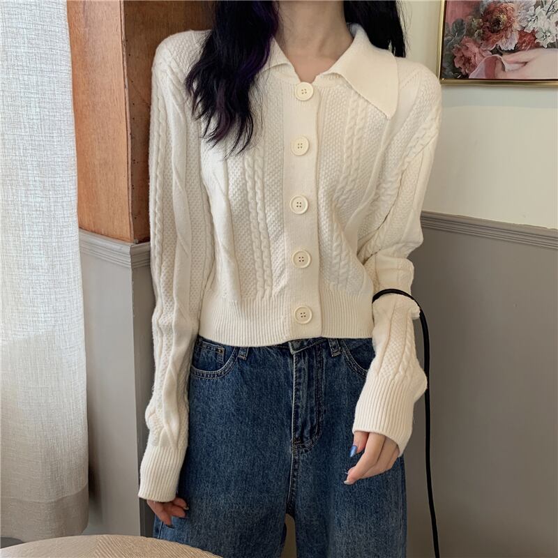 【韓国通販 dgo】polo collar long sleeve cardigan 3colors (A1128)