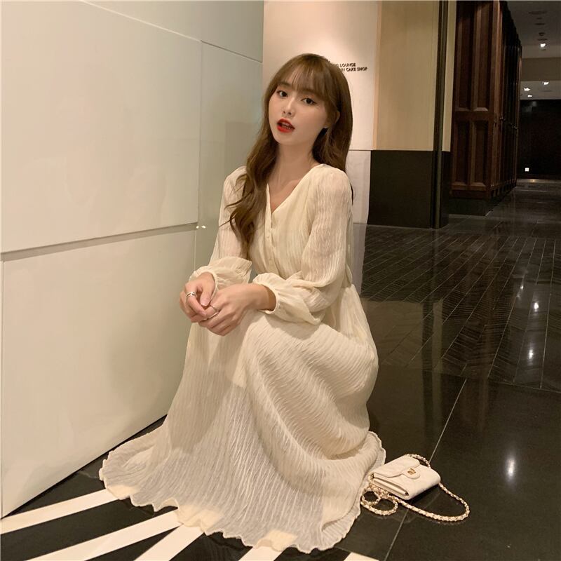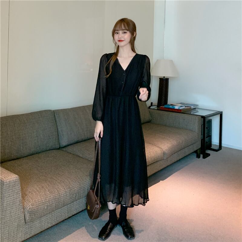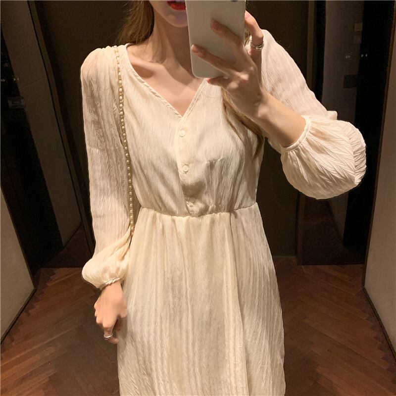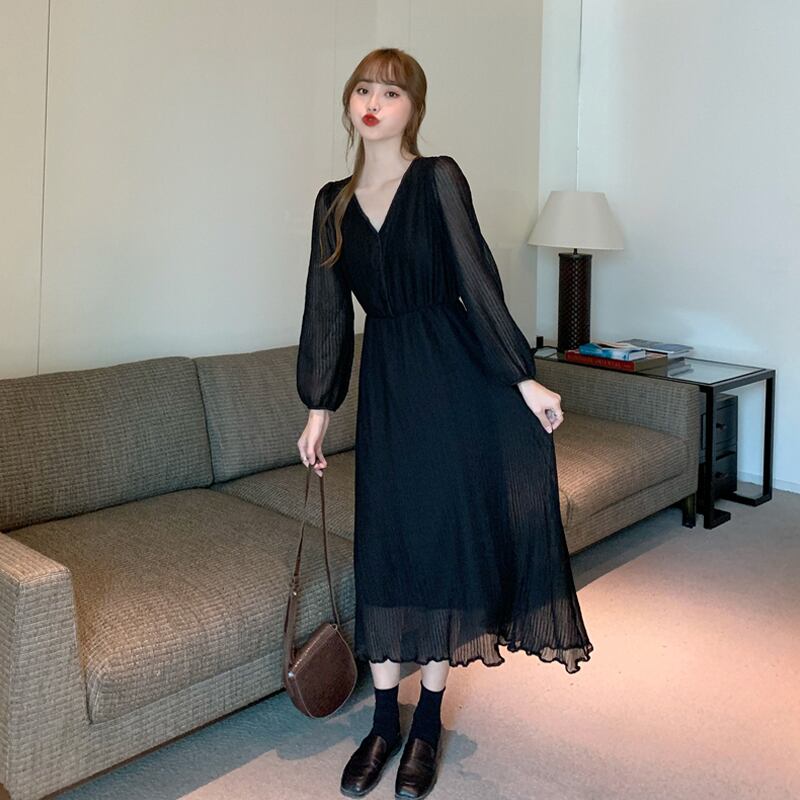 【韓国通販 dgo】v-neck long sleeve one-piece dress 2colors(A1132)