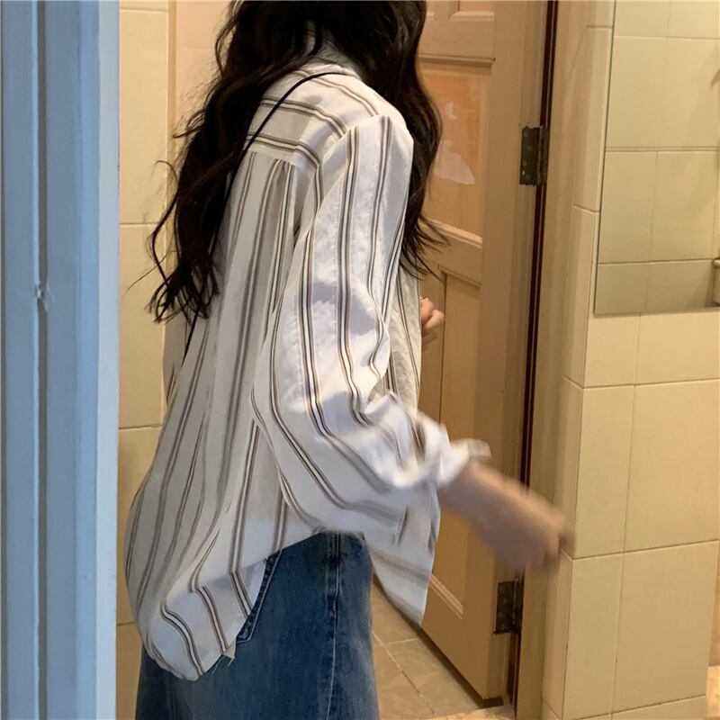 【韓国通販 dgo】polo collar long sleeve stripe shirt(A1123)