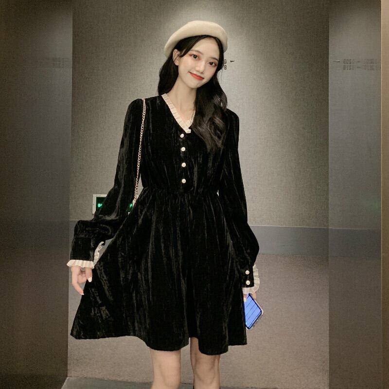 【韓国通販 dgo】french retro velvet one-piece dress 2types(A1112)