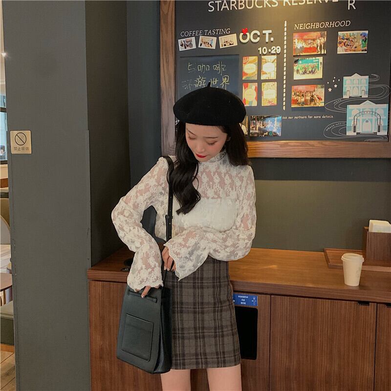 【韓国通販 dgo】long sleeve floral lace shirt 2types(A1102)