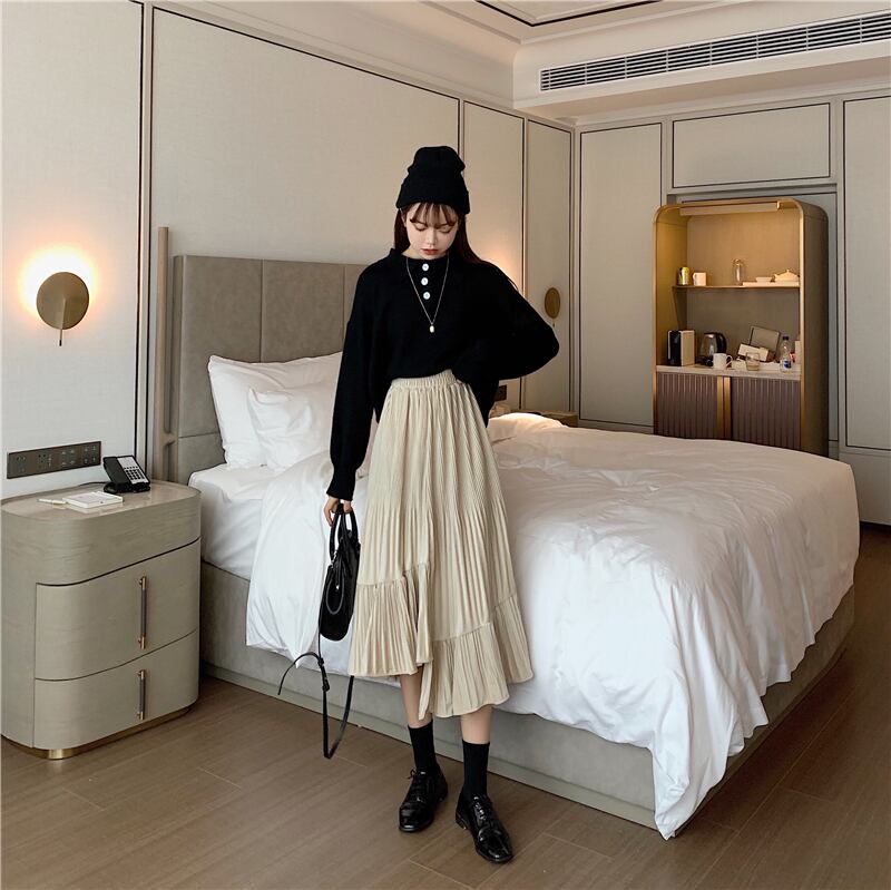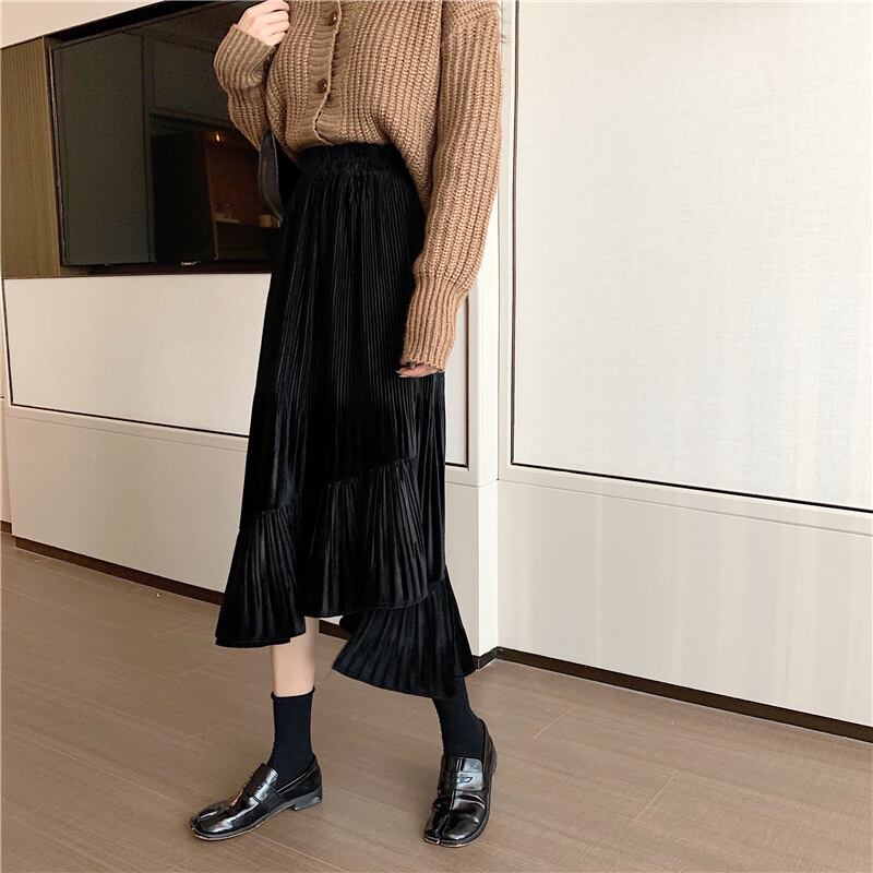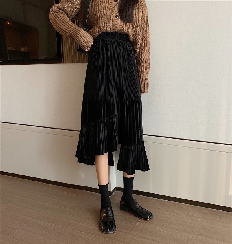 【韓国通販 dgo】middle-length high-waist irregular skirt 2colors(A1087)