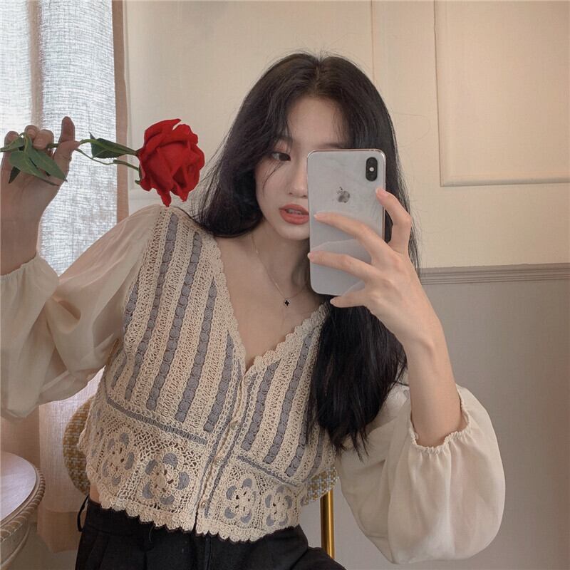 【韓国通販 dgo】lantern sleeve v-neck short cardigan(A1071)
