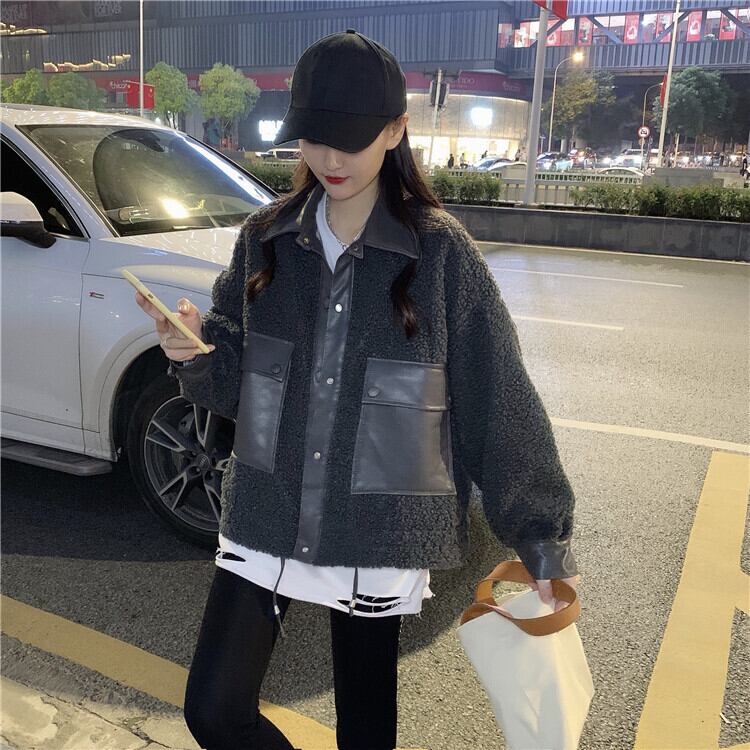 【韓国通販 dgo】PU leather pocket stitch long sleeve jacket 2colors(A1053)