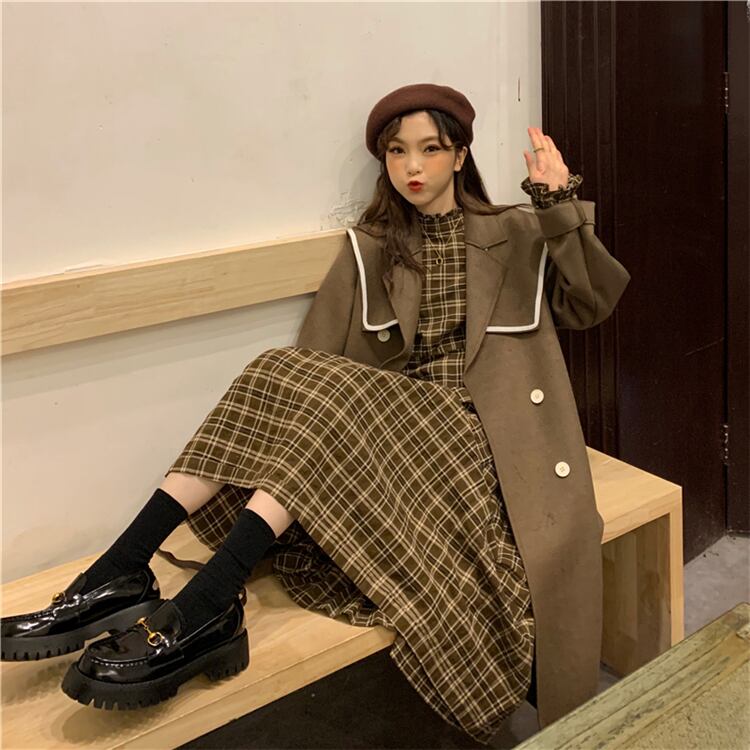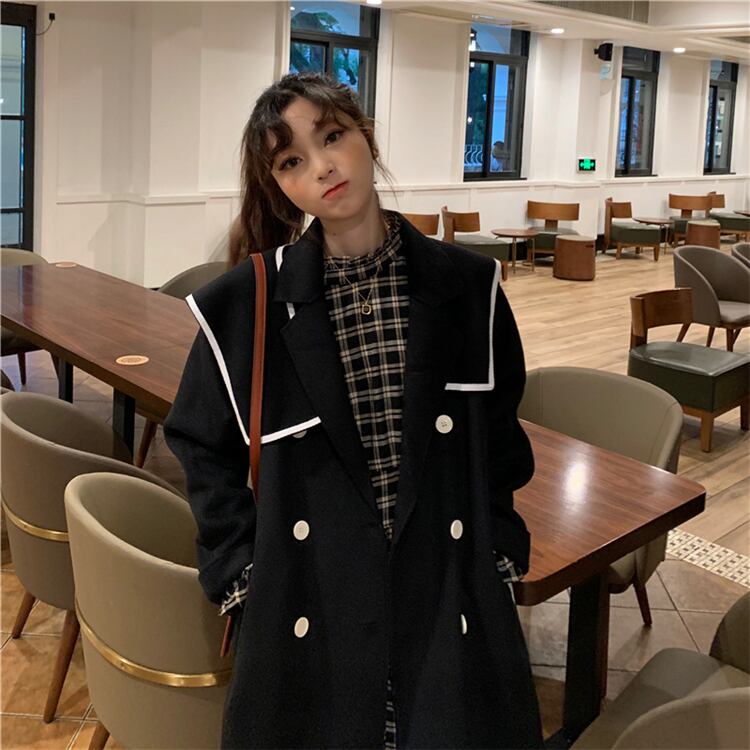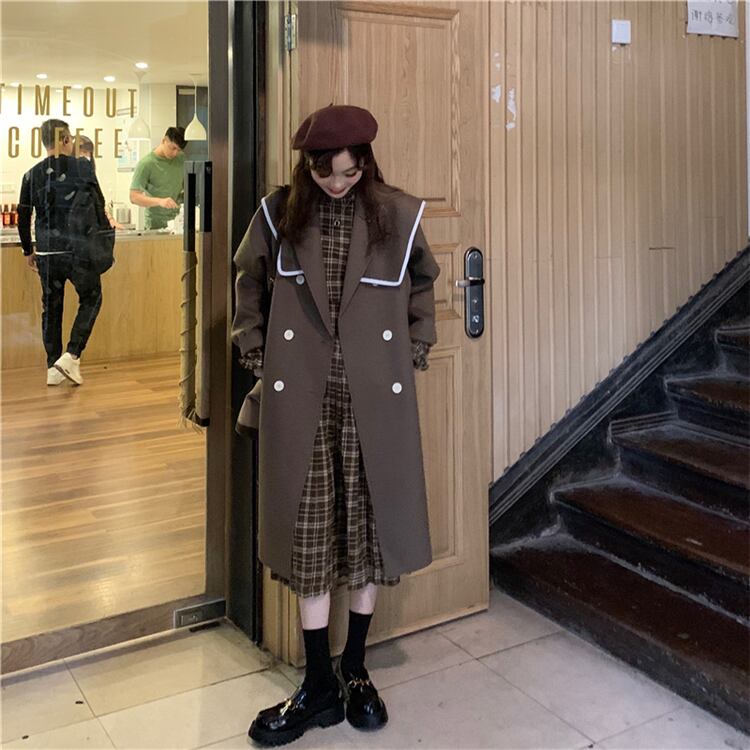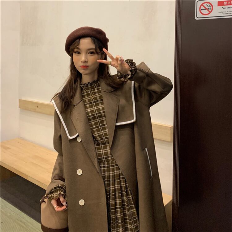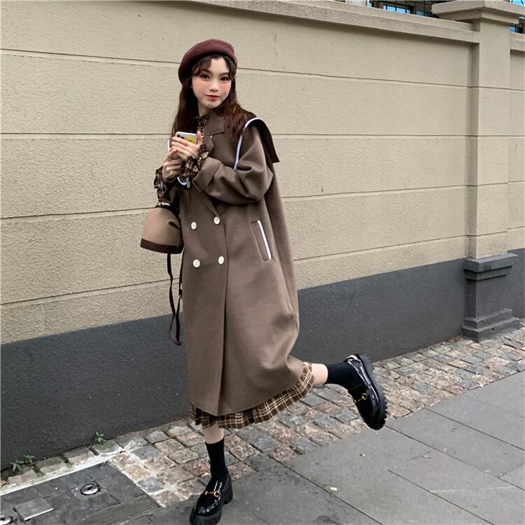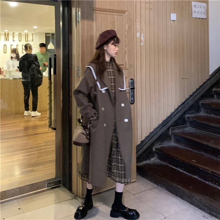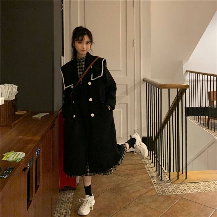 【韓国通販 dgo】middle-length double breasted coat 2colors(A1037)