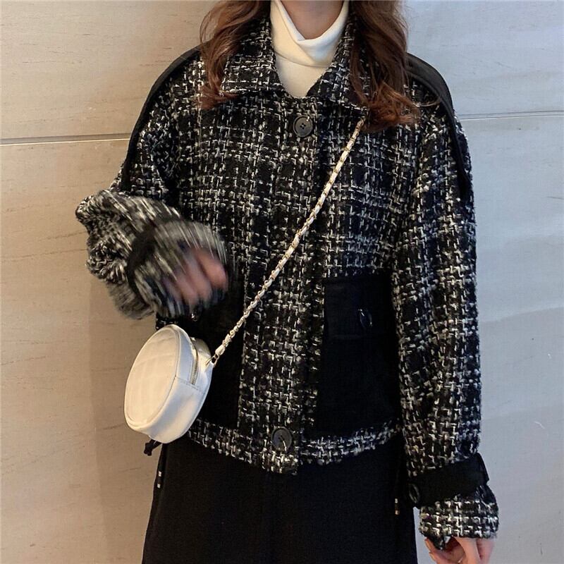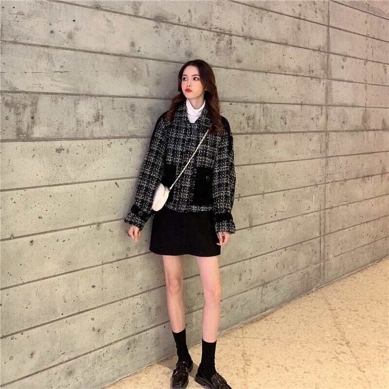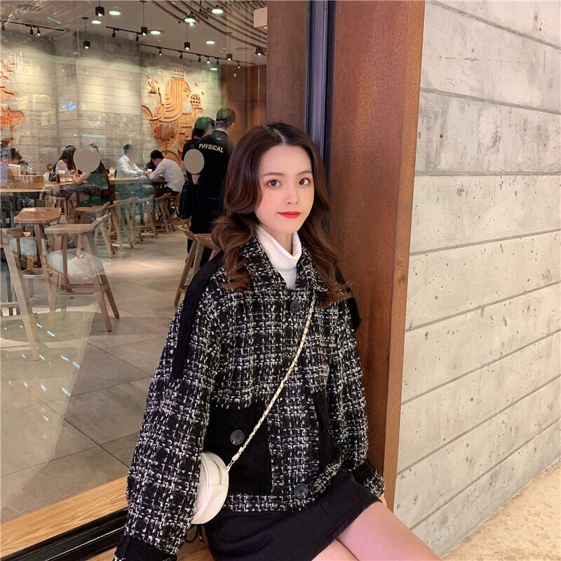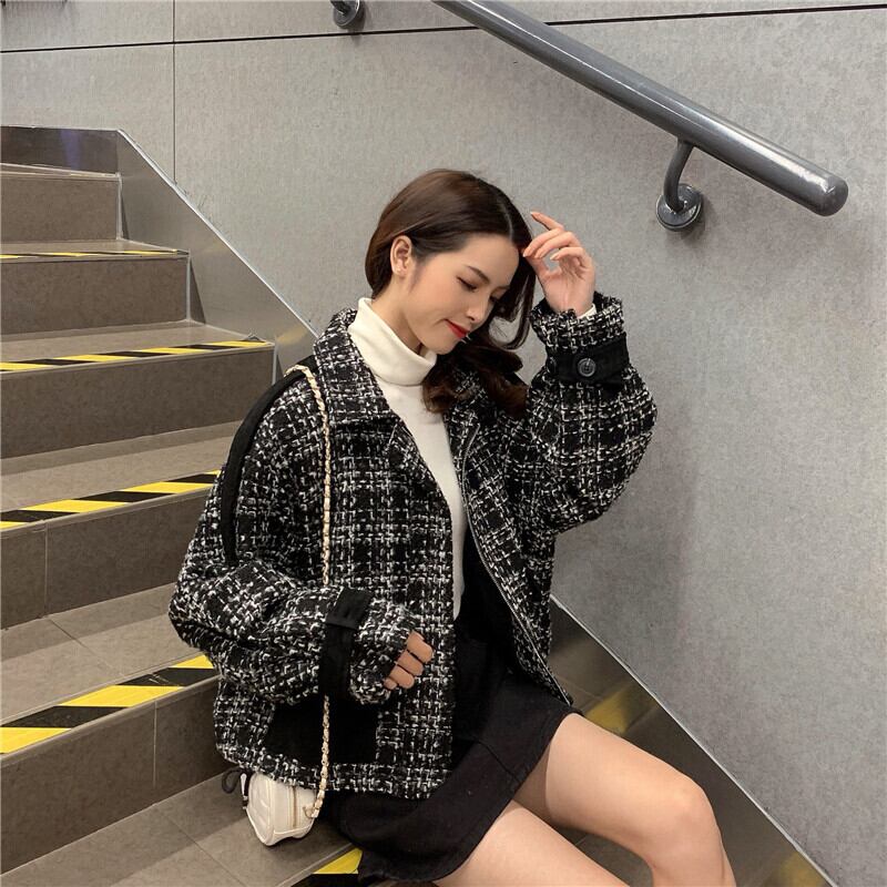 【韓国通販 dgo】polo collar checked long sleeve jacket(A1011)