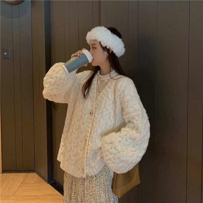 【韓国通販 dgo】lantern sleeve v-neck cardigan 3colors(A0988)