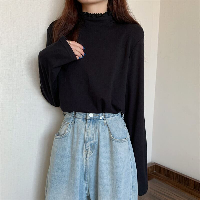 【韓国通販 dgo】half high collar long sleeve tops 2colors(A0982)