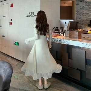 【韓国通販 dgo】french long sleeve knit one-piece dress 2colors(A0963)