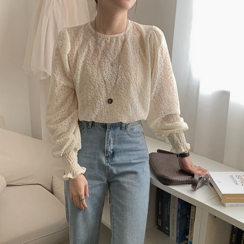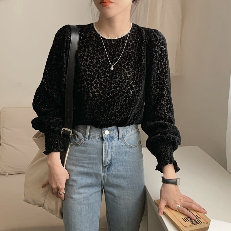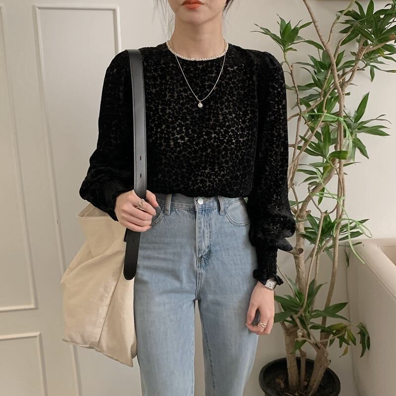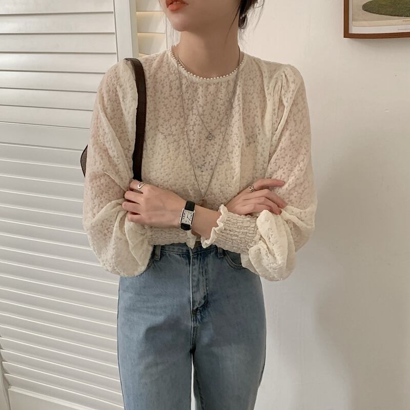 【韓国通販 dgo】round neck long sleeve blouse 3colors (A0945)