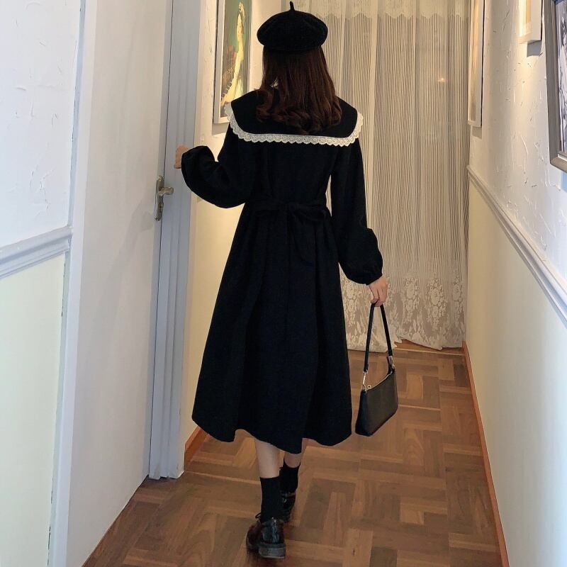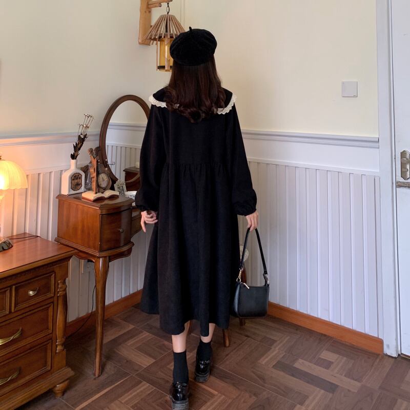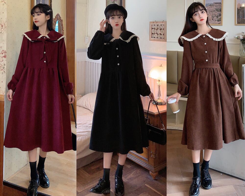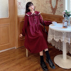 【韓国通販 dgo】doll collar middle-length corduroy one-piece dress 3colors(A0939)