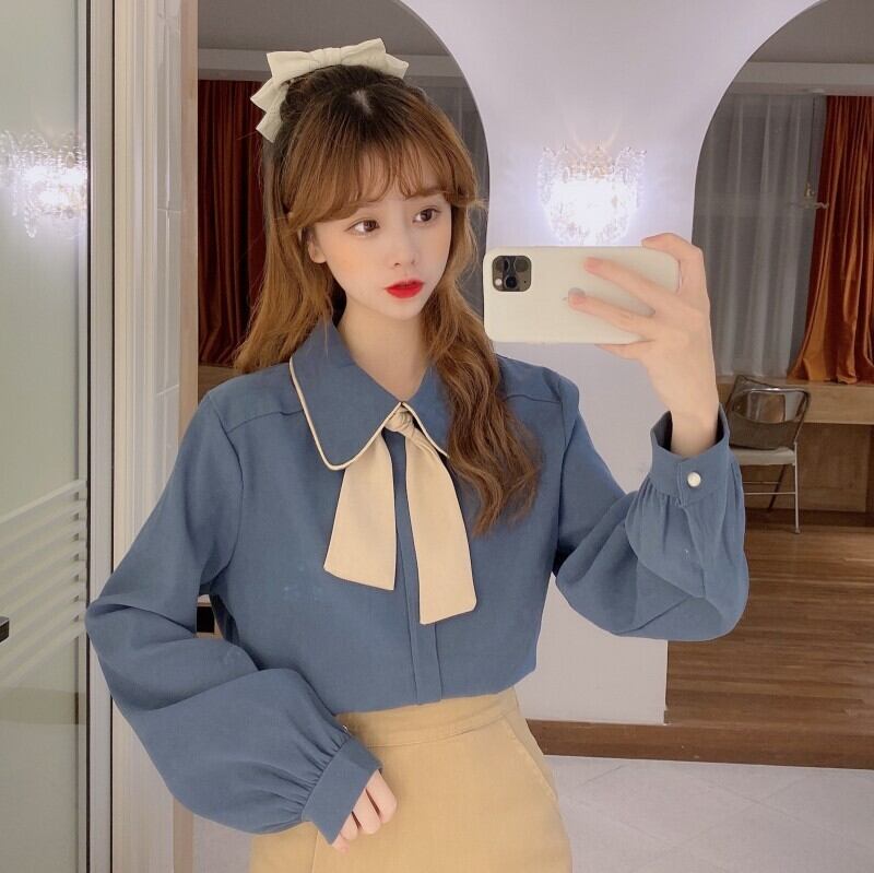 【韓国通販 dgo】doll collar bow knot shirt 3colors(A0896)