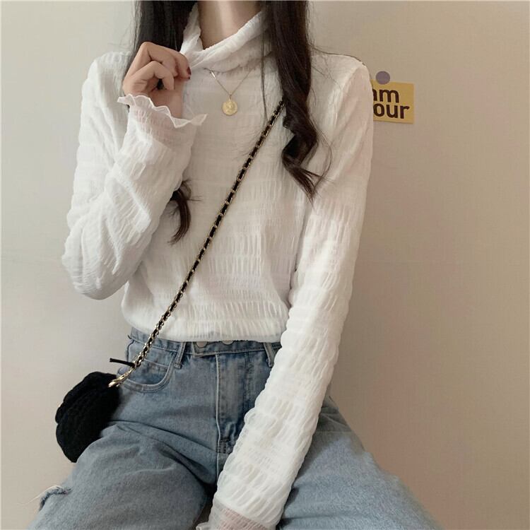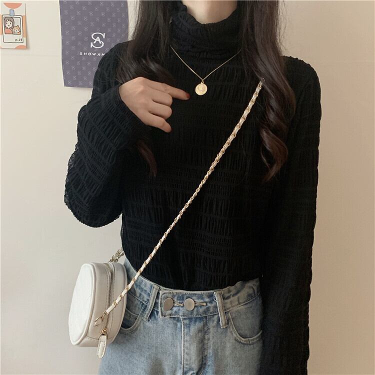 【韓国通販 dgo】high collar velvet chiffon shirt 2colors(A0893)