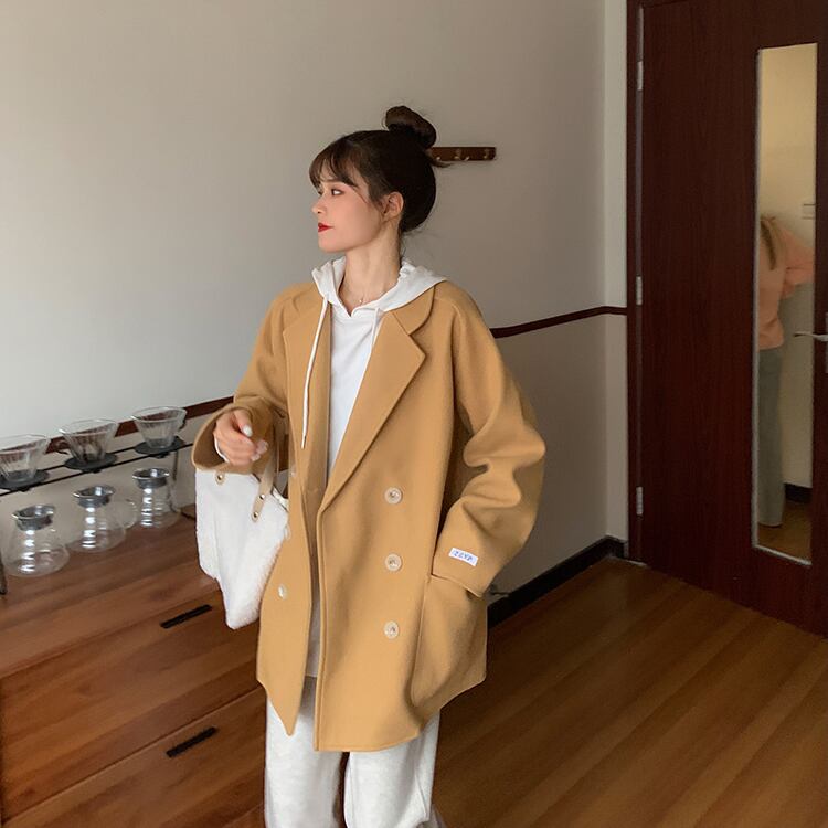 【韓国通販 dgo】single breasted suit collar wool coat 2colors(A0885)
