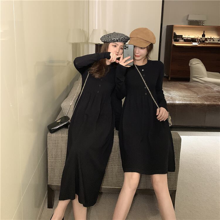 【韓国通販 dgo】high-waist long sleeve one-piece dress 3colors(A0883)