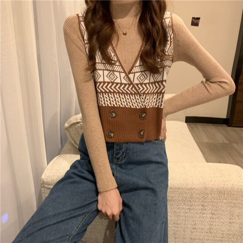【韓国通販 dgo】retro sleeveless v-neck vest 2colors(A0877)