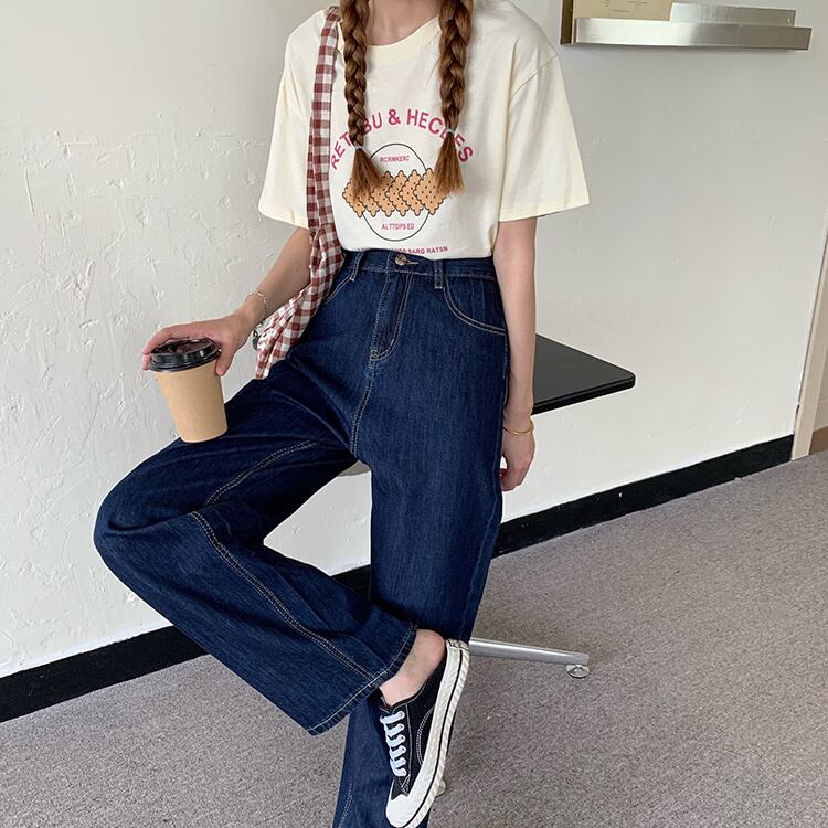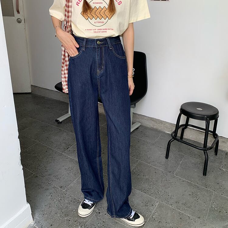 【韓国通販 dgo】high-waist straight jeans plus velvet darkblue color(A0870)