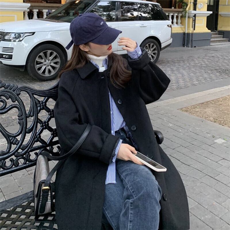 【韓国通販 dgo】single breasted long wool coat plus cotton 2colors(A0869)