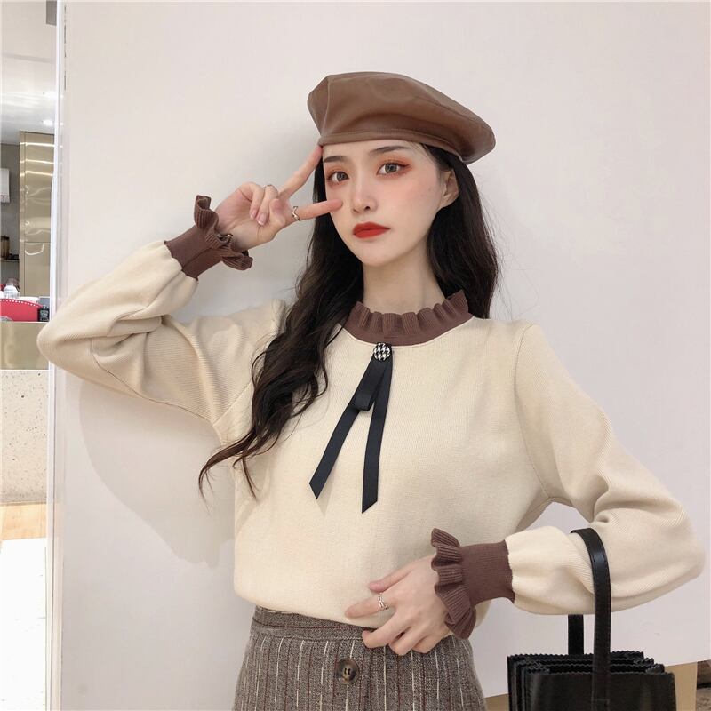 【韓国通販 dgo】half high neck long sleeve tops 2colors(A0866)