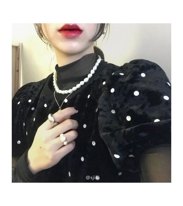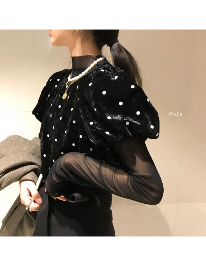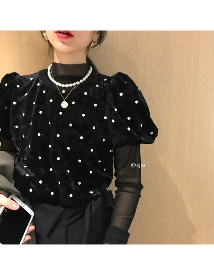 【韓国通販 dgo】polka dot design puff sleeve tops+long sleeve tops two-piece(A0855)