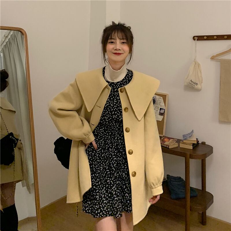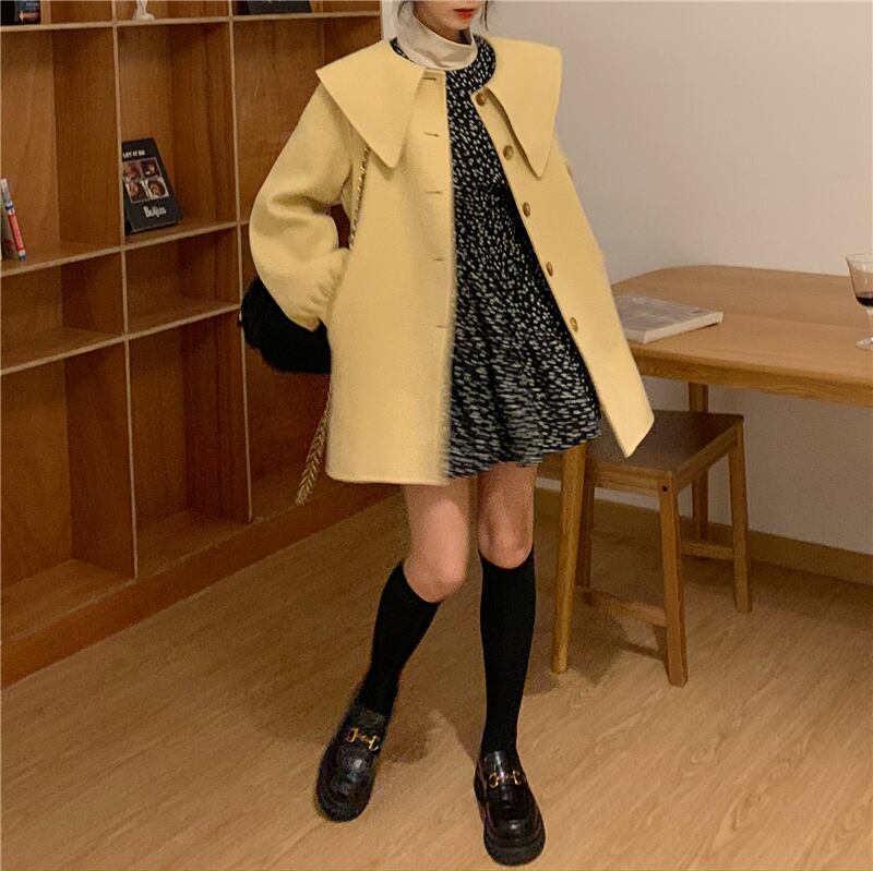 【韓国通販 dgo】single breasted middle-length wool coat yellow color(A0846)