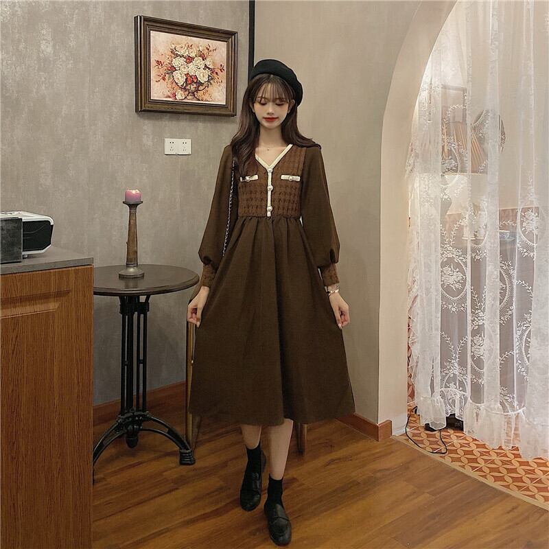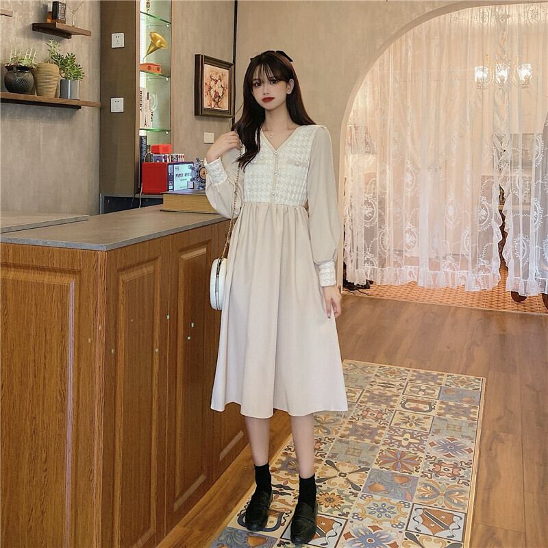 【韓国通販 dgo】middle-length elegant one-piece dress 2types 2colors(A0840)